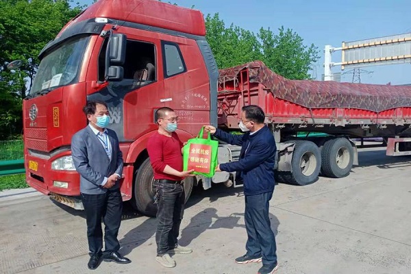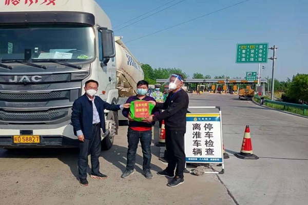 4月21日下午,谢家集区政协副主席、区工会主席程忠杰率队前往淮南西高速路口慰问货车司机,为他们带来“娘家人”的关心关爱。