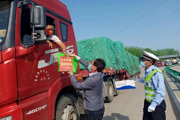 一辆辆货车正在经过初审、验码、核酸检测等程序,有序通行。在卡口停留的一刻,区工会慰问组将一份份内装口罩、面包、火腿肠、矿泉水及入会宣传册的“工会大礼包”,及时递到货车司机手中。“这是我们为您准备的爱心礼包,您辛苦了,一路顺风!”。货车司机们对区工会的慰问表示感谢。